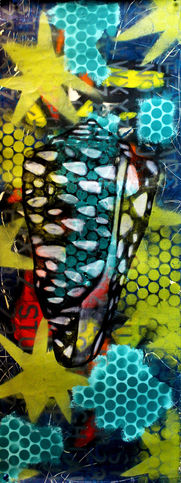 After the dark series of the selfies it was time to lighten up and make happy pictures. More and more pattern had become apparent in the works leading up to this series of work which ended up being a push and pull in between pattern and stylised still lives of sea shells.